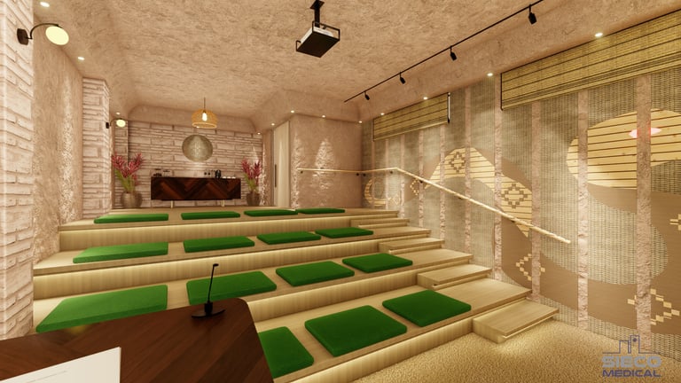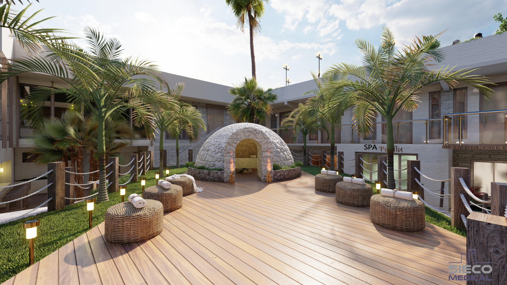 Aprovechando su ubicación, este hotel buscaba una remodelación de antiguo a holístico, para todos aquellos que desean utilizar su viaje para mejorar su salud, brindando una experiencia de wellness y relajación. El diseño cuenta con espacios para tratamientos de masoterapia, cámaras hiperbáricas, área para clases de nutrición y cocina, área de meditación y yoga, gym, estética y en terraza un andador y minigolf.