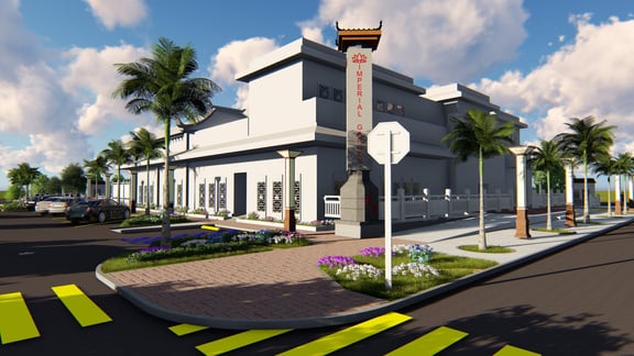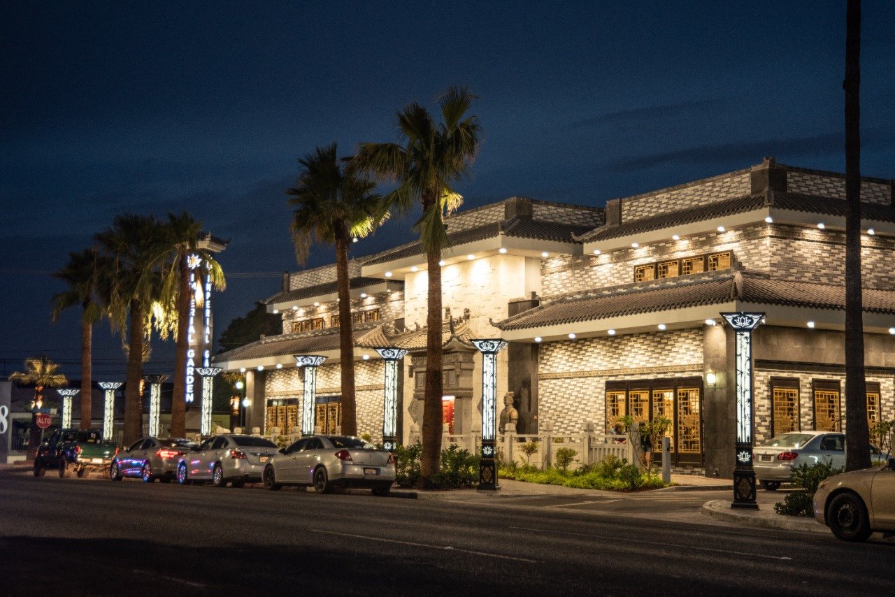 El concepto de este diseño fue la emulación de una antigua mansión china, incorporando materiales y texturas originales de China; donde los espacios fueran funcionales para la dinámica de un restaurante de comida china. El diseño incluyó cocina, cuarto frío, cuarto de congelación, almacén, área de lavaloza, área general de comensales, salas privadas modificables, el diseño de bardas perimetrales, estanque artificial con control de temperatura y estacionamiento.