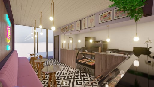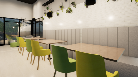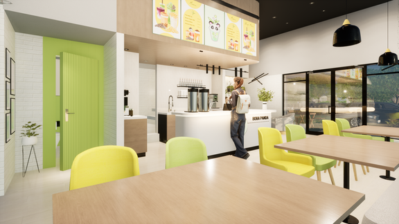 Con este diseño se buscó crear un espacio limpio, estético y moderno para atender un mercado joven y estudiantil, proponiendo materiales y texturas contemporáneas.