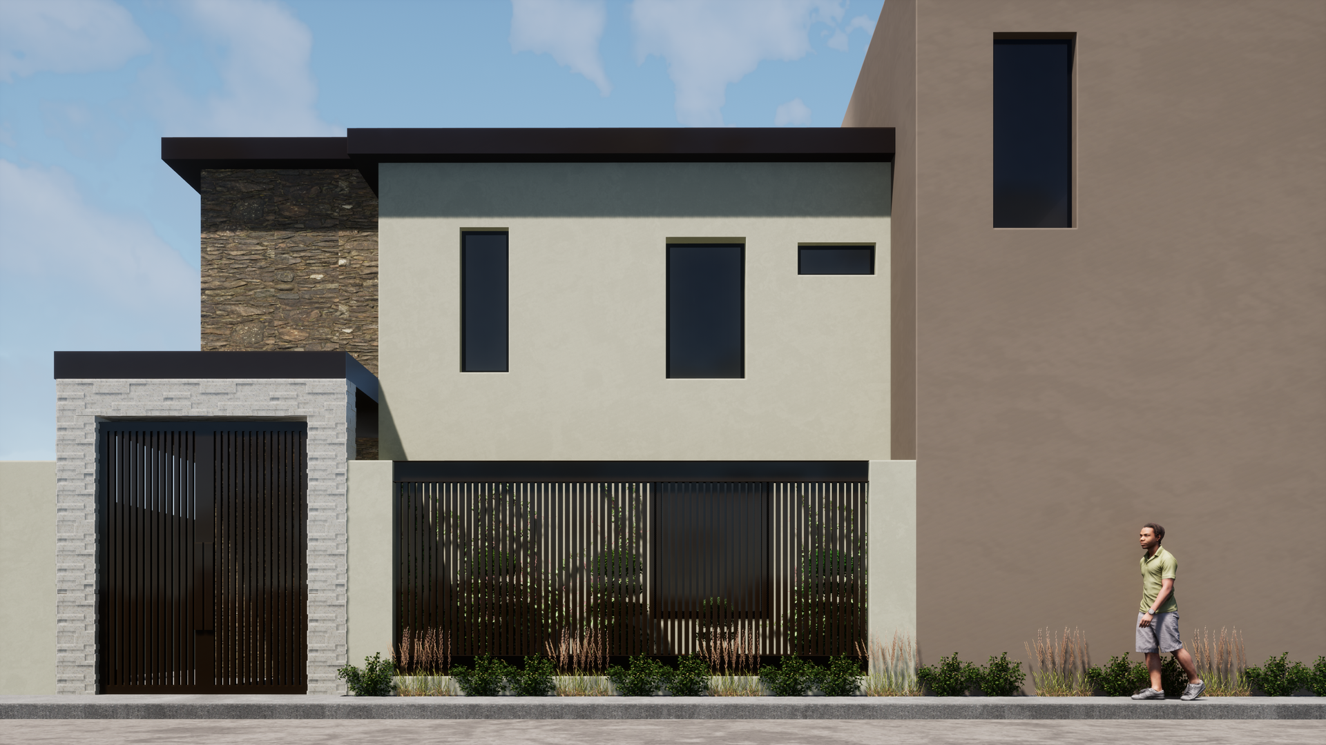 Este diseño fue creado para un matrimonio joven adecuandose a su presente estilo de vida y permitiendo la adaptación. El proyecto cuenta con dos niveles. En planta baja se acondicionaron las áreas comunes: sala, cocina, comedor, medio baño, área de lavado, terraza interior y área de asador. La planta alta se diseño con 3 habitaciones y dos baños completos.