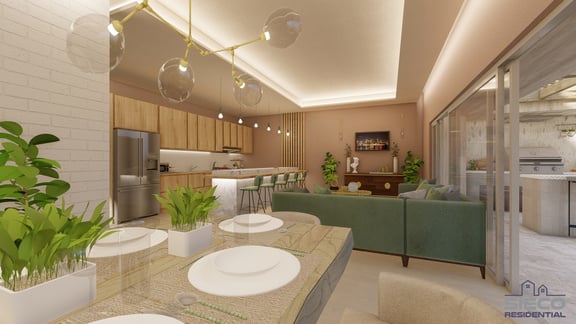 Este proyecto de diseño de interior fue creado para una familia de 5 integrantes, expresando cada uno sus gustos e interéses, logrando plasmarlos tanto en habitaciones como en las áreas comunes.