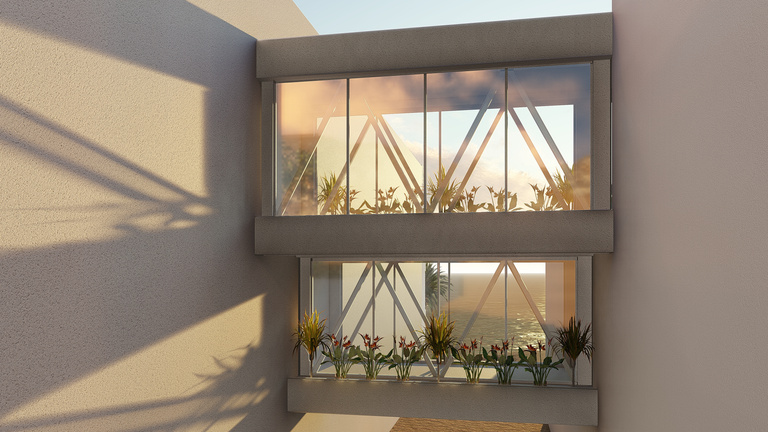 Debido a la orientación del predio se propusieron ventanales para permitir una iluminación y ventilación natural