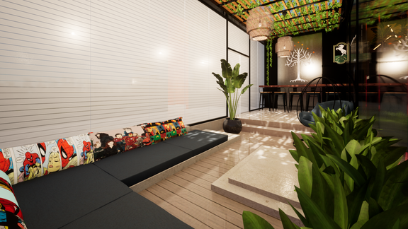 El propósito de este proyecto era crear un coworking diferente, con un diseño fresco y con una temática de videojuegos y cómics.