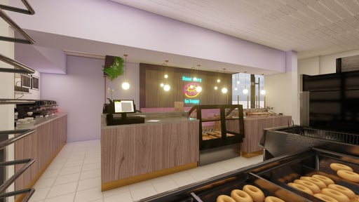El área de preparación y cocina fue adaptada a la técnica norteamericana en el proceso de elaboración de donas.